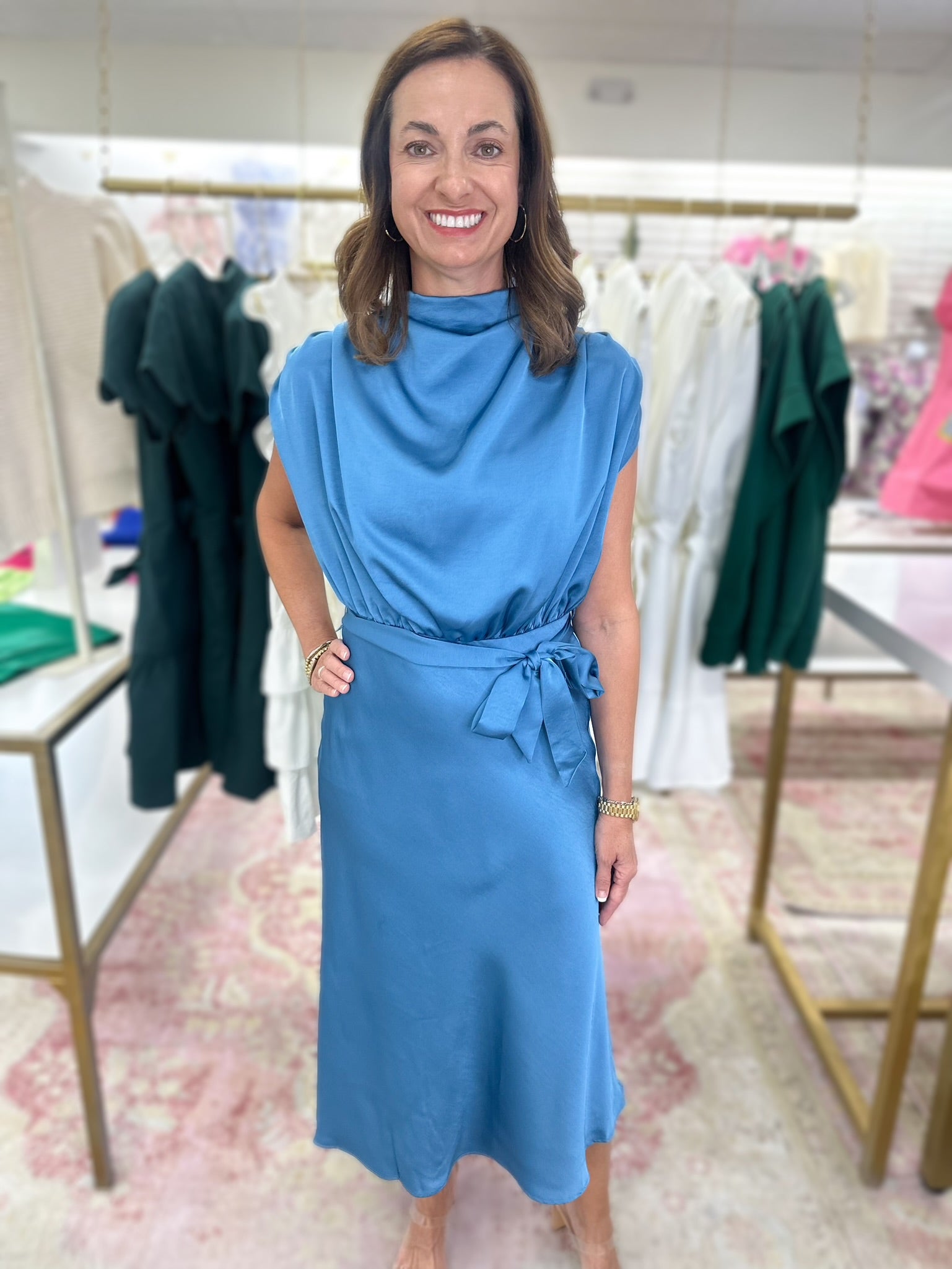 Baby Blue Satin Midi Dress