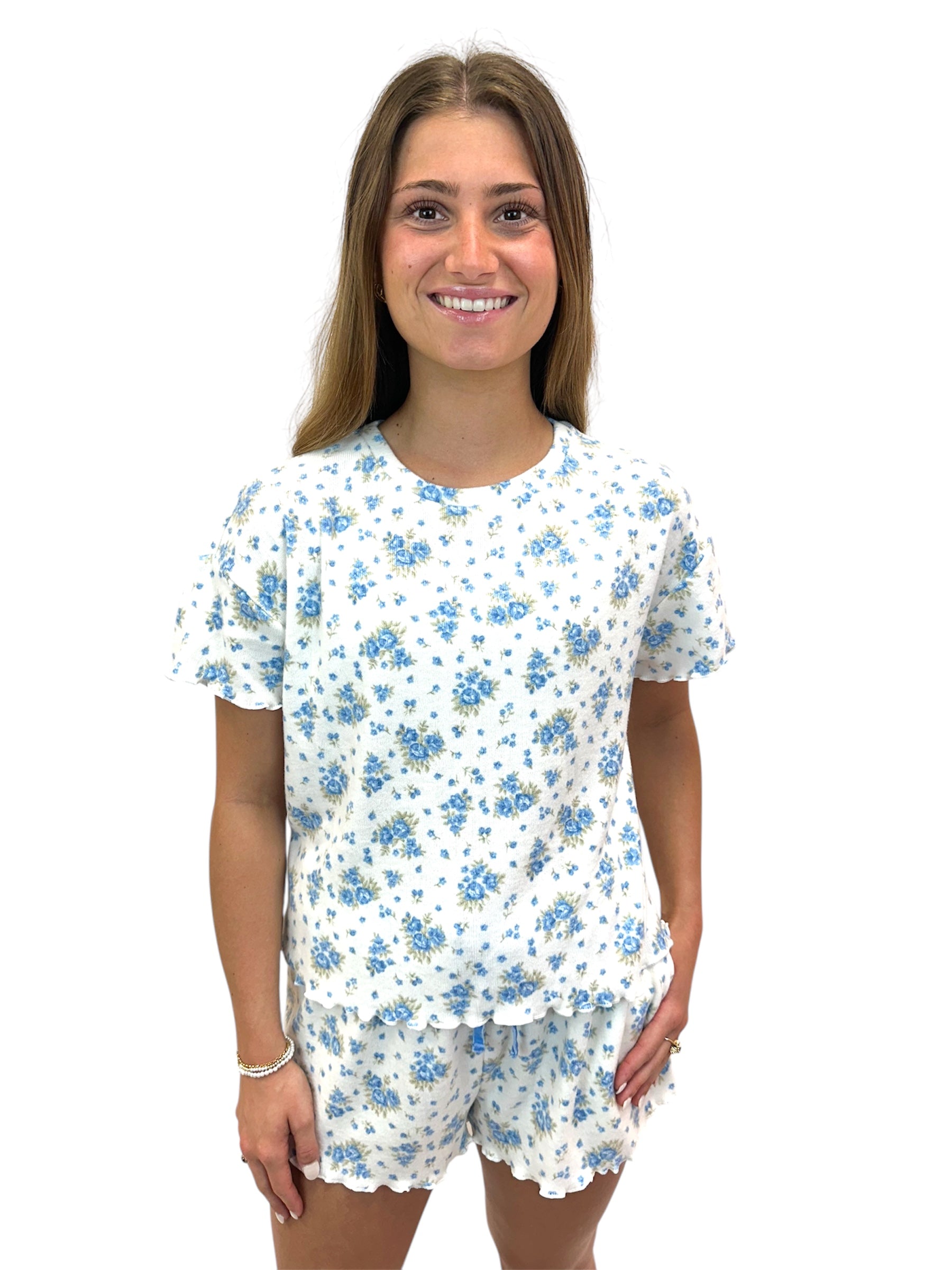 Blue & White Floral Pajama Set