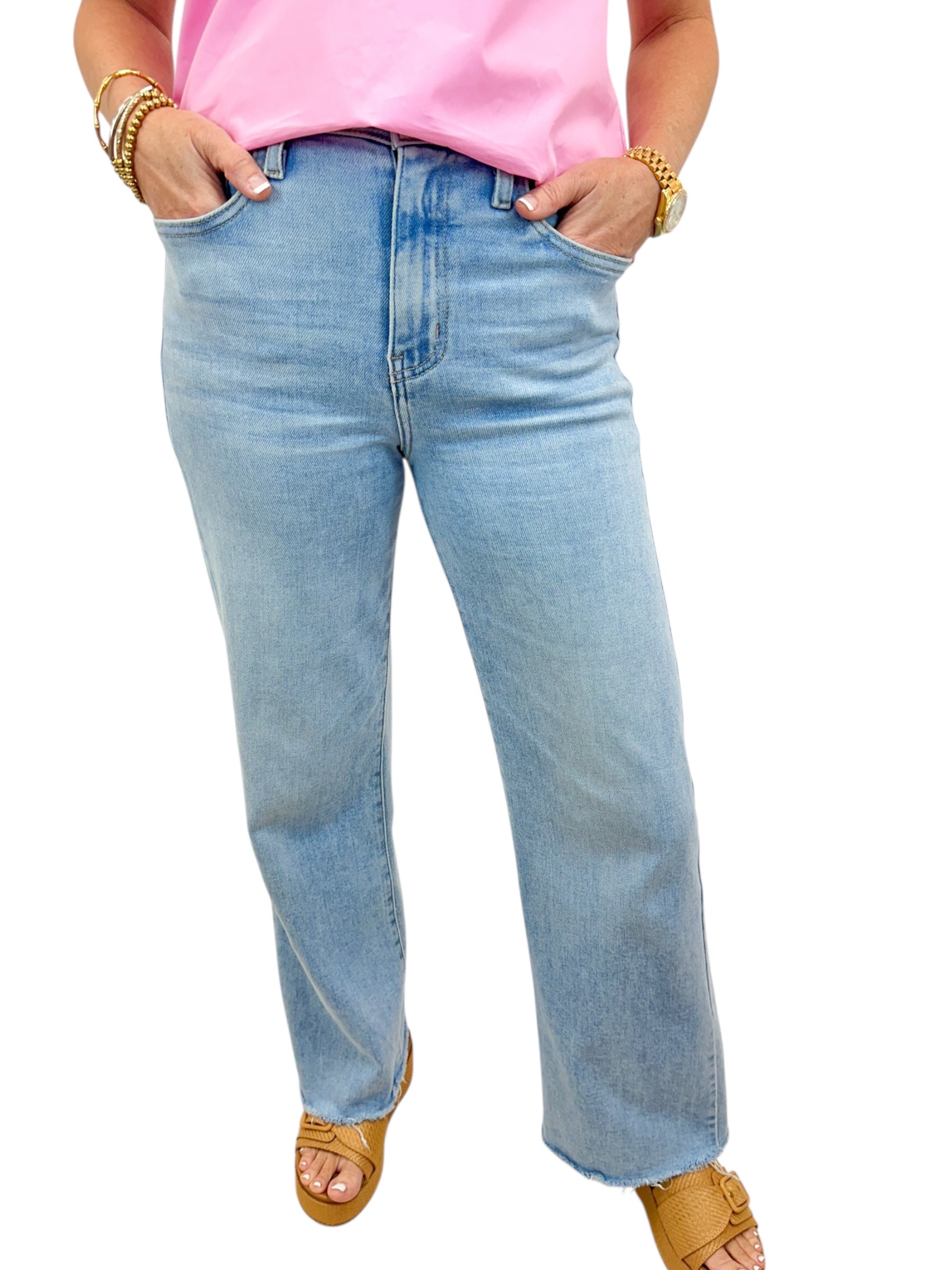 One of our best sellers—this wide leg light wash jean is soft, stretchy, and flattering. An easy favorite you’ll reach for again and again! Runs true to size.