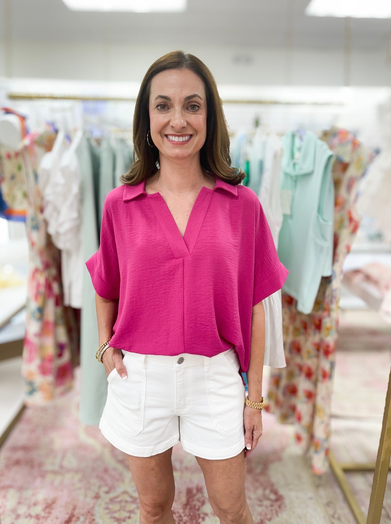These white shorts feature a flattering front pocket design and soft stretch fabric for all-day comfort. An easy go-to for warm weather styling. Runs true to size.